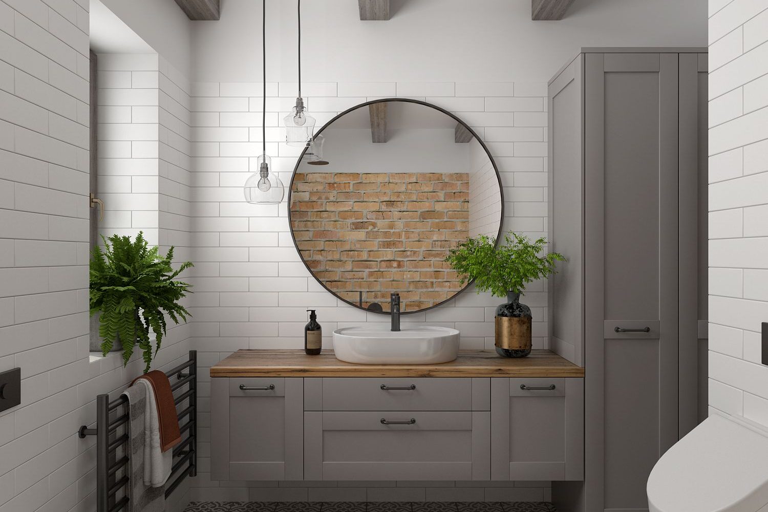 Celá koupelna spojuje moderní funkčnost s originálním stylem díky jedné stěně s cihlovou tapetou. Tento detail přináší do bílého prostoru nečekaný prvek, který oživuje celkový vzhled a dodává mu osobitost. Komfort a estetika tu nacházejí dokonalou rovnováhu.