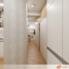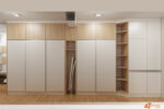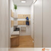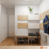 Předsíň laděná do světlého dřeva a bílé barvy působí už na první pohled svěže, čistě a příjemně. Kombinace těchto dvou odstínů vytváří dojem vzdušnosti a prostoru, což je pro vstupní část domova ideální. Světlé dřevo dodává prostoru teplý, přírodní tón, zatímco bílá barva podtrhuje jednoduchost a eleganci celkového řešení.