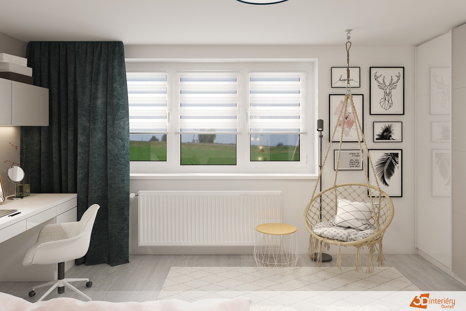 Celý pokoj působí klidně, promyšleně a útulně. Každý prvek podporuje harmonii i prostor pro vlastní svět fantazie.