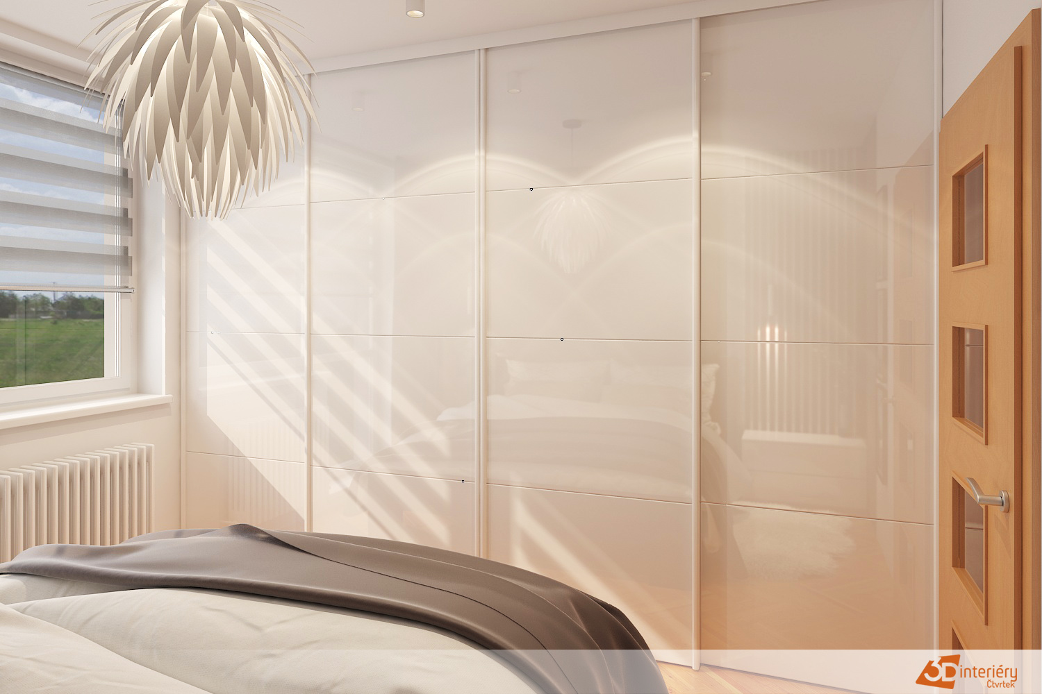 Stěny zůstávají převážně světlé, což zajišťuje dojem otevřenosti. Dřevěné akcenty a teplé světlo dodávají místnosti útulnost. Ložnice tak vyzařuje rovnováhu mezi luxusem a klidem – místo, kam se člověk rád vrací.