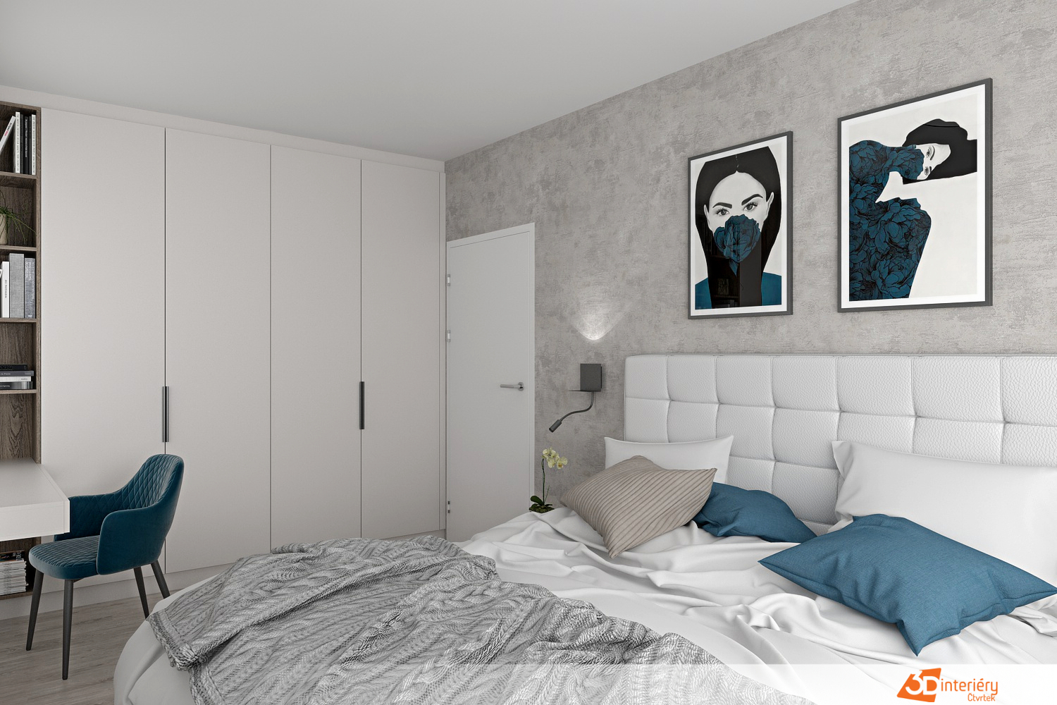 Celkový design ložnice spojuje kontrasty a jemné ladění barev, což vytváří příjemné a stylové prostředí, ideální pro relaxaci a klidný spánek. Rekonstrukce přinesla nový život a svěží atmosféru celému prostoru.