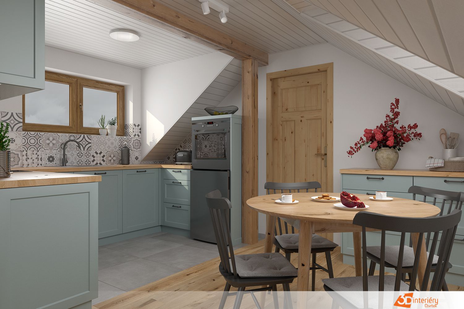 Celá kuchyně dýchá vyvážeností mezi modernou a přírodními prvky. Barvy, materiály a tvary spolu vedou tichý dialog, který působí uvolněně a přirozeně. Místo zve k vaření, setkávání i klidnému posezení u čaje.