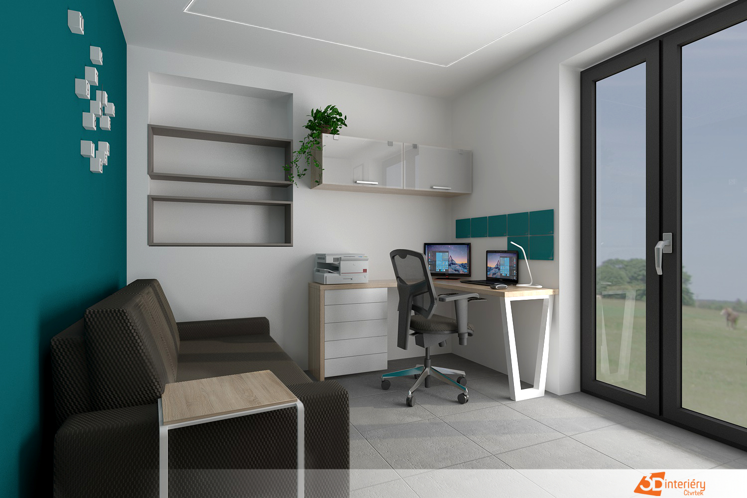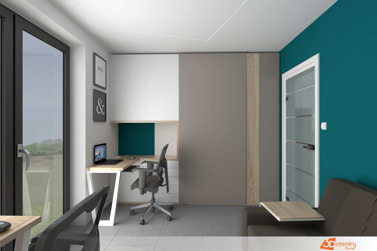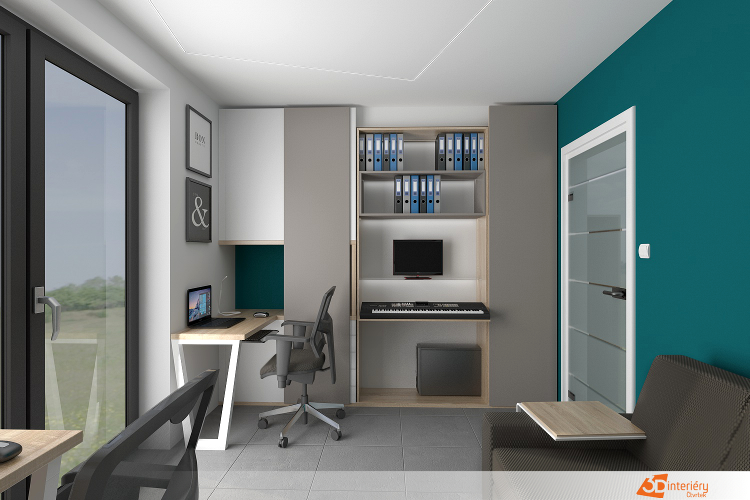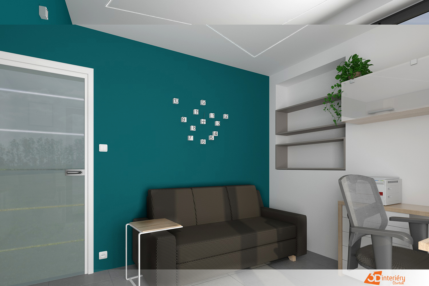 Kancelář s tyrkysovou zdí