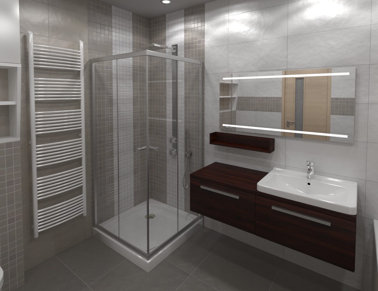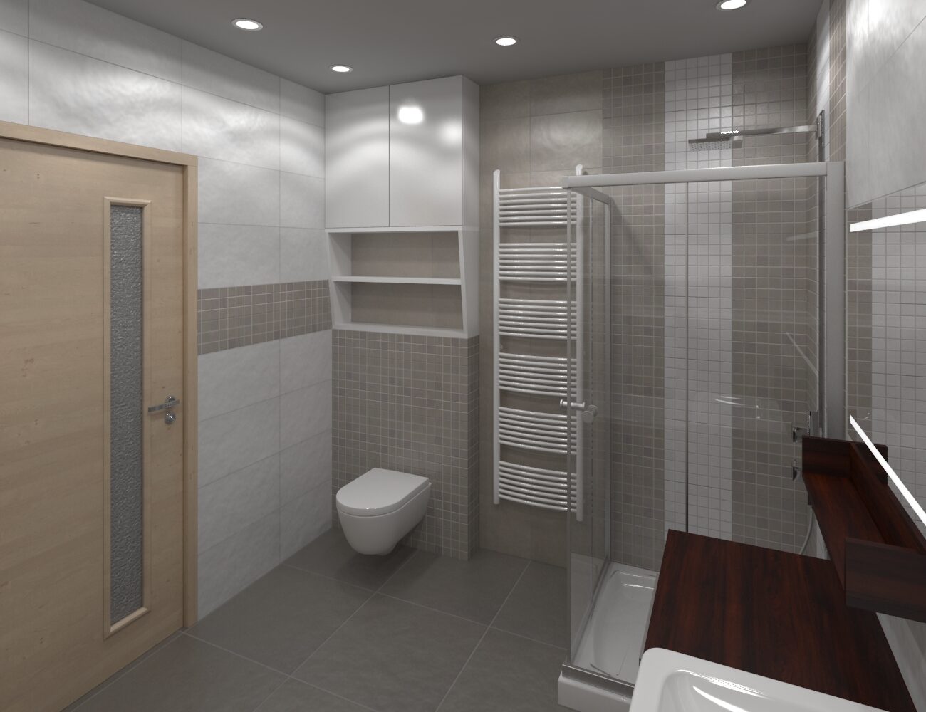 Koupelna s dřevěným detailem