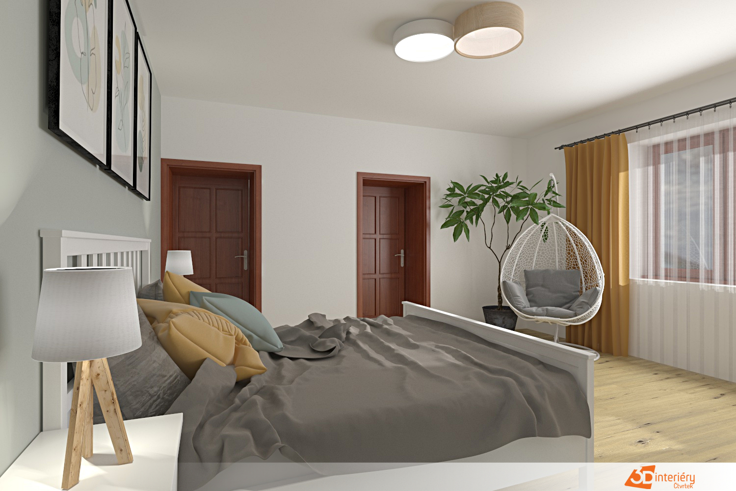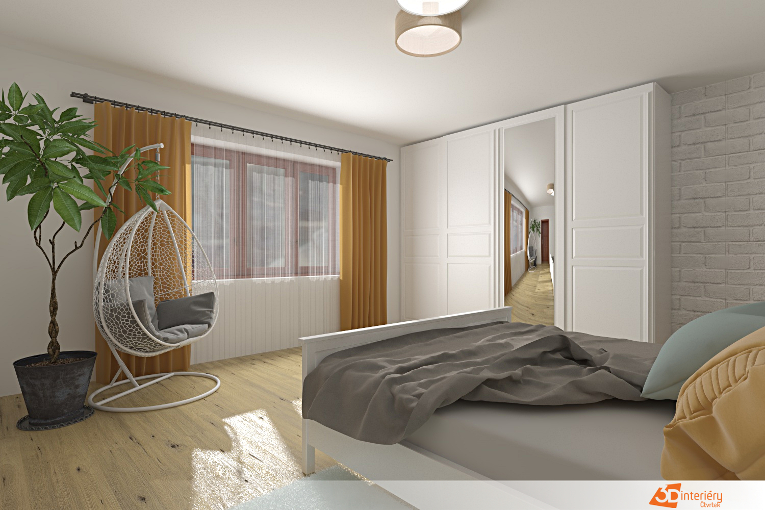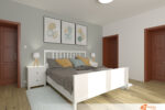 Ložnice nabízí kombinaci pohodlí, funkčnosti a stylu. Každý prvek slouží účelu, ale zároveň přispívá k celkové atmosféře klidu a osobitosti.