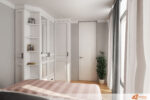 Celý pokoj tvoří vyvážený celek, kde každý prvek navazuje na další. Vzniká tak prostor vhodný pro relaxaci i soustředění, plný stylu a klidu zároveň.