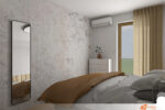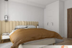 Celý pokoj vytváří prostor, který neruší, ale zároveň nenechává chladným. Krémová paleta, textury a jemná geometrie společně tvoří interiér vhodný pro klid, odpočinek i chvíle ticha bez přerušení.