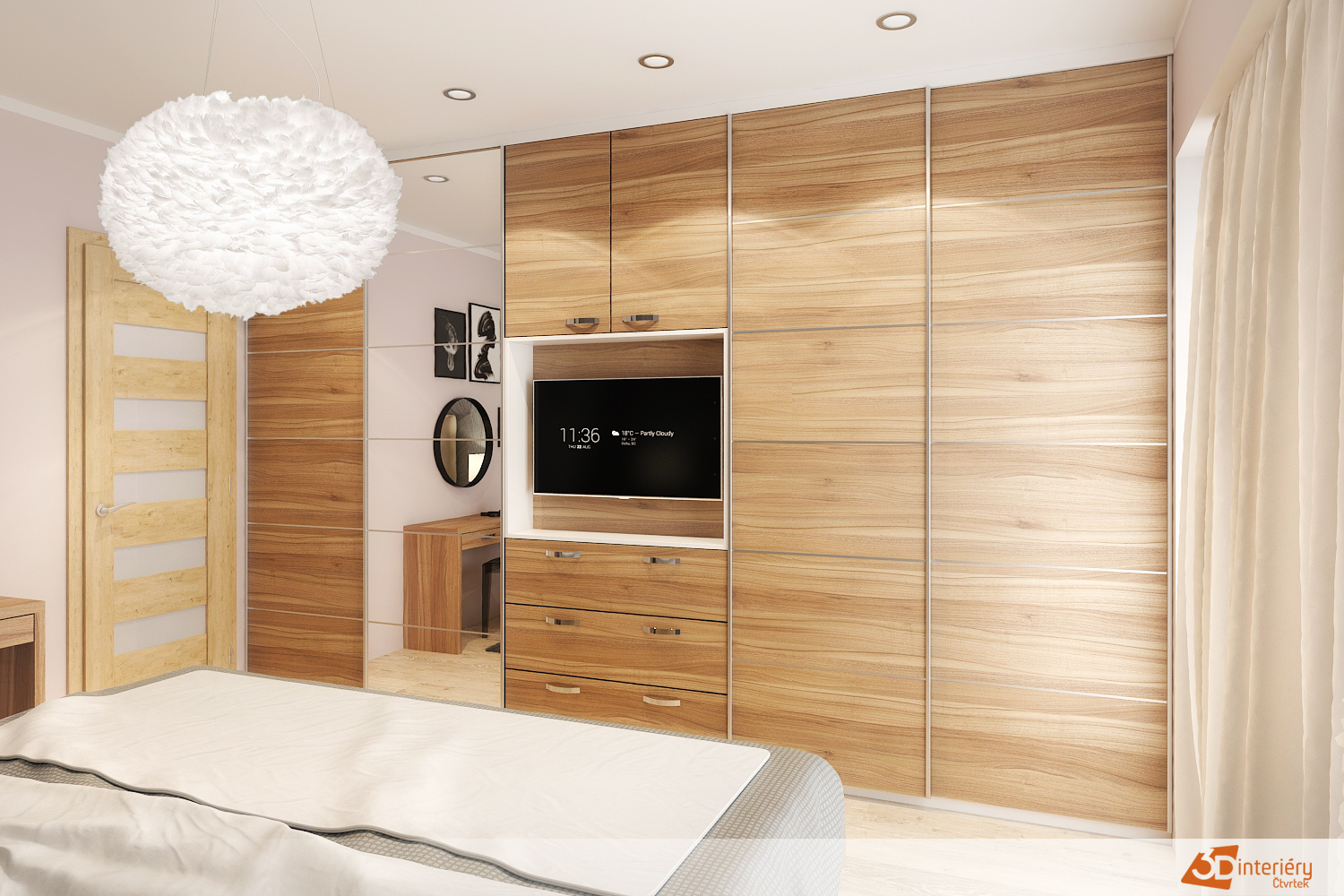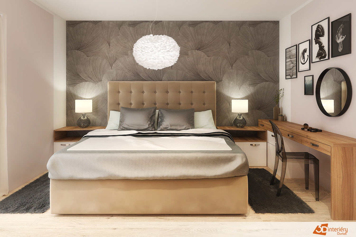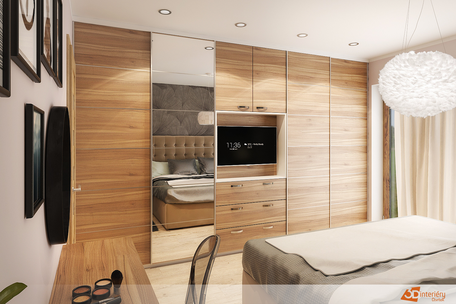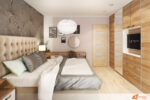 Moderní ložní interiér s dřevěnými prvky