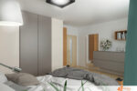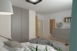 Návrh moderní ložnice s modrým akcentem