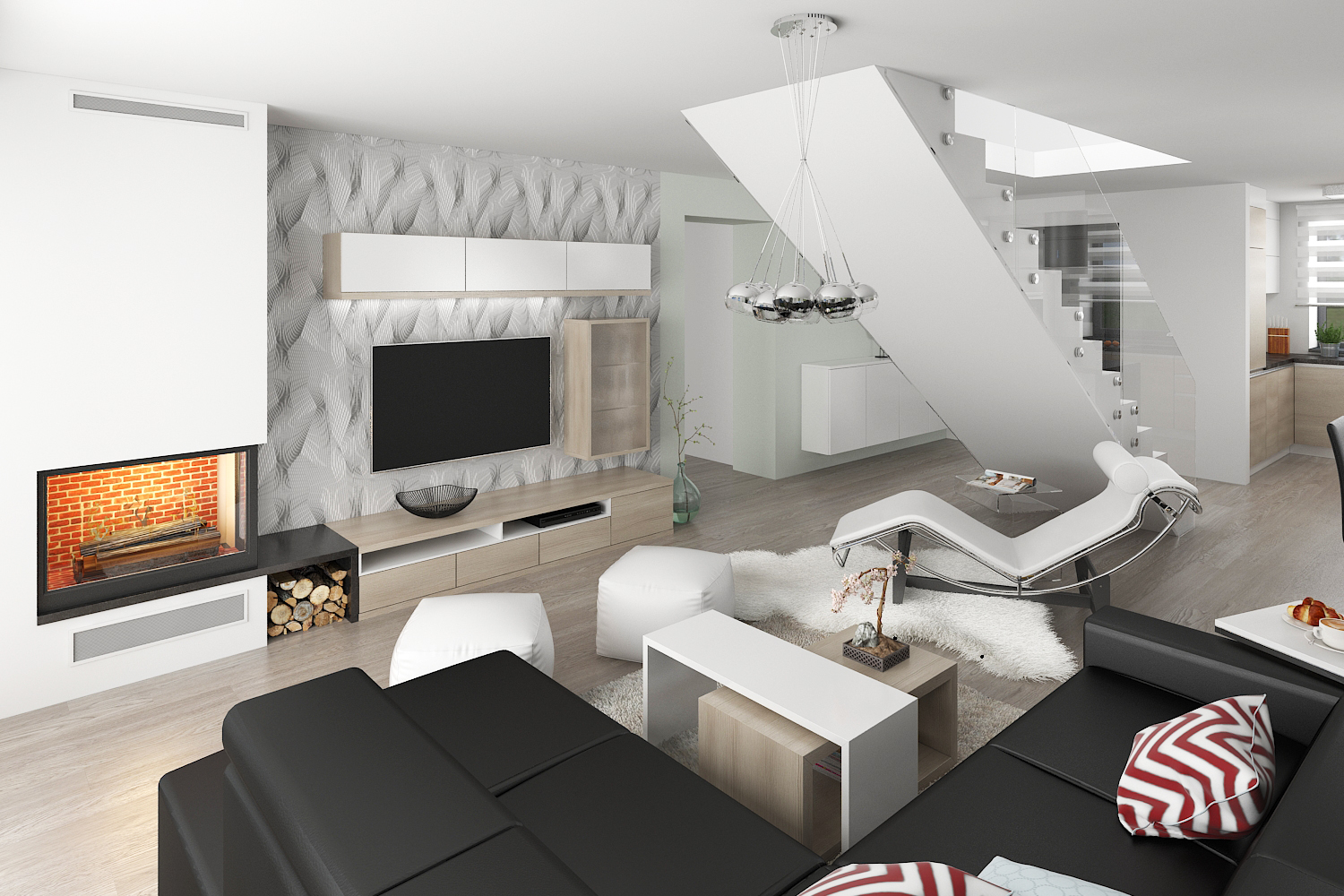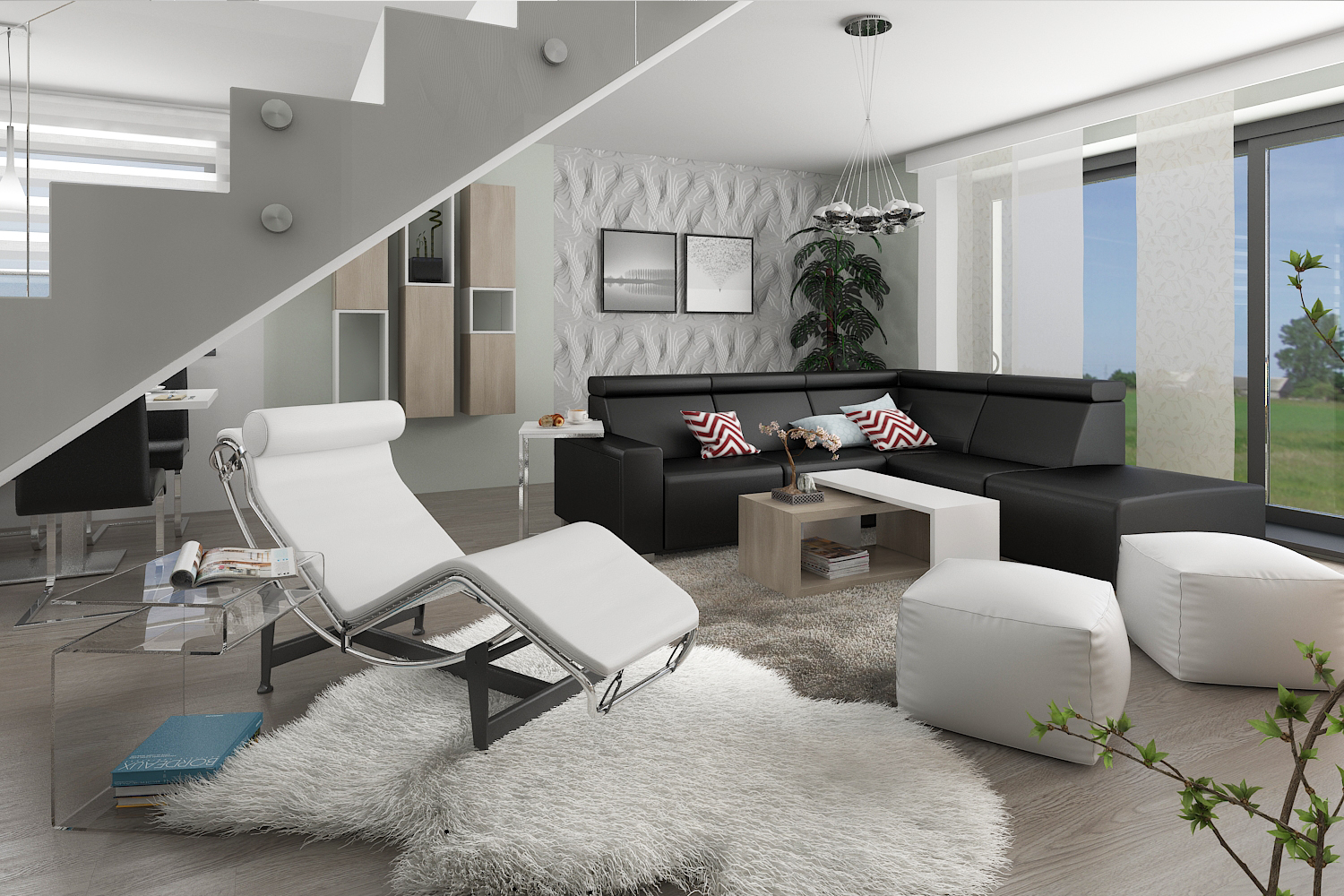 Obývací pokoj a kuchyně v černobílé-Plzeň