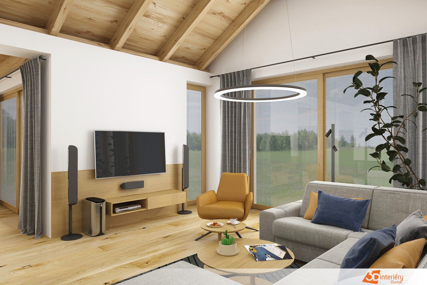 Celý prostor působí vyváženě a přirozeně. Kombinace dřeva, barev a rostlin nabízí ideální místo pro relaxaci i společné chvíle v kruhu rodiny nebo přátel.