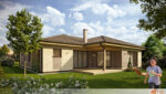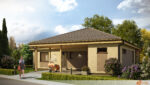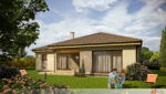 Bungalov díky této kombinaci barev působí přirozeně a zapadá do různorodého prostředí — od příměstských čtvrtí až po venkovskou krajinu. Pastelová žlutá s hnědými detaily navozuje dojem útulnosti a tepla, aniž by působila výstředně.