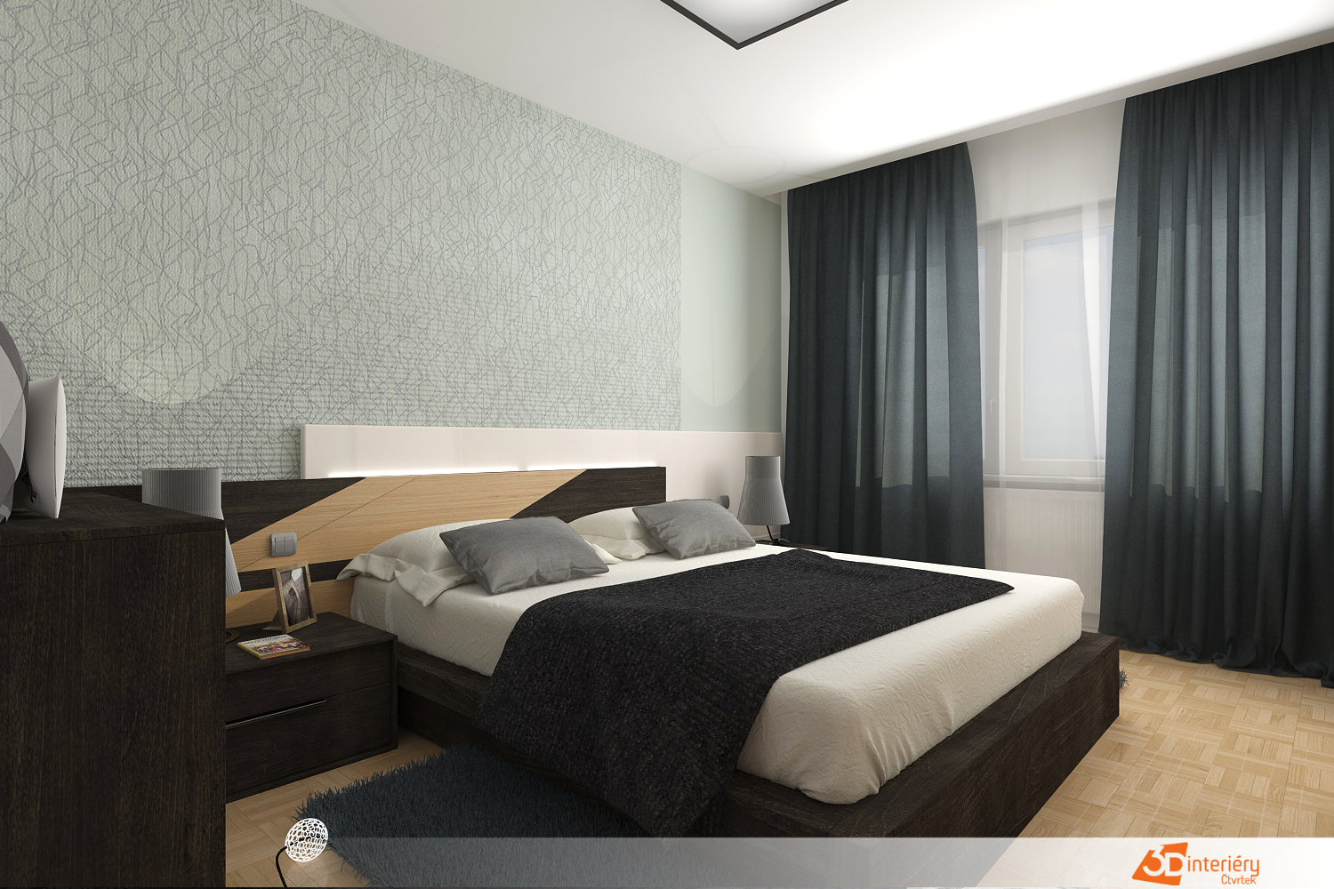 Celý interiér působí vyváženě, funkčně a esteticky čistě, přičemž barevné ladění podporuje klid a komfort každodenního odpočinku.