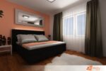 Broskvové detaily se objevují v textiliích, jako jsou polštáře nebo přehozy, a zároveň jemně prostupují do dekorací a doplňků. Tato teplá barva přináší do ložnice pocit útulnosti a komfortu, aniž by narušovala celkovou harmonii prostoru.