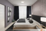 Realizace moderní ložnice s černými prvky a jemnou barevností
