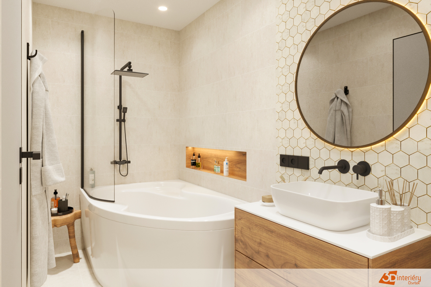 Relaxační koupelna představuje místo pro zklidnění, obnovu energie a odpočinek po náročném dni. Přírodní materiály, tlumené barvy a promyšlené detaily vytvářejí harmonické prostředí, kde mizí stres i napětí. Vana uprostřed místnosti nabízí prostor pro dlouhou koupel, pěnu, vůni esenciálních olejů a klidné ticho.