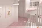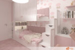 Růžové království pro malé princezny vytváří pohádkovou atmosféru plnou něhy a radosti. Každý kout pokoje zdobí jemné růžové odstíny od pudrové po sytou malinovou, které ladí s bílým nábytkem a zlatými detaily. Kouzelná postel láká k sladkým snům a dobrodružným představám. Měkké závěsy, zdobené třpytkami, padají kolem okna a vytvářejí kouzelný rám pro denní světlo.