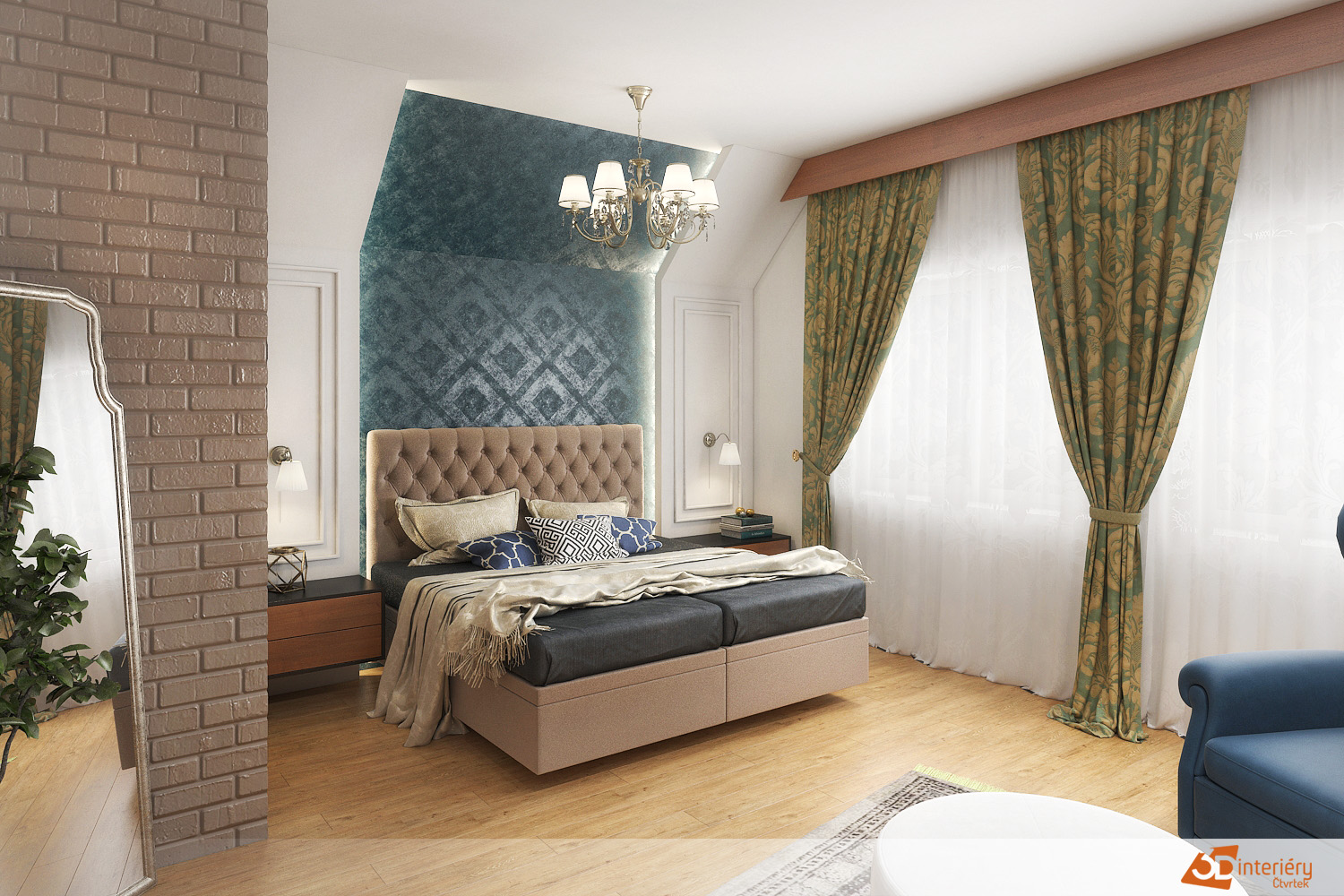 Koberec pod postelí hřeje chodidla, vzduch nese vůni dřeva a šalvěje. Tato ložnice neslouží jen ke spánku. Nabízí prostor, kde se myšlenky uklidní a každý nový den začne s čistou hlavou.