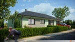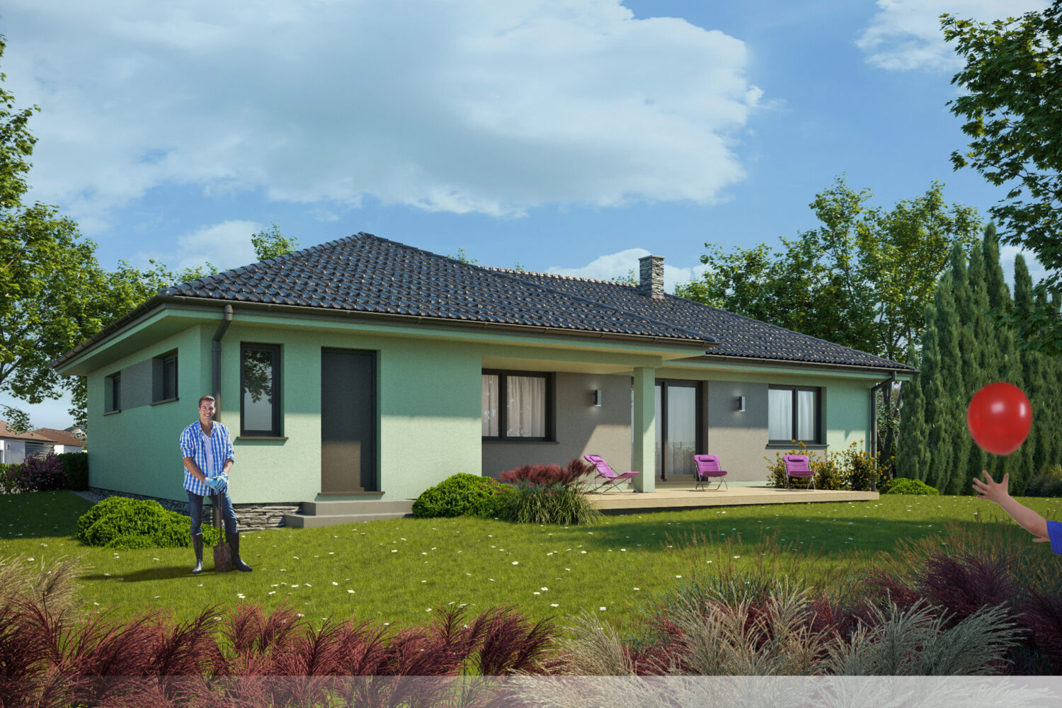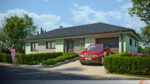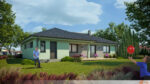 Fasáda v mátově zeleném odstínu přináší do exteriéru domu svěží a zároveň jemný nádech přírody. Tento odstín vytváří příjemnou atmosféru klidu a harmonie, která působí nenásilně a elegantně. Povrch fasády má hladkou strukturu, která odráží světlo a dodává stavbě lehkost.