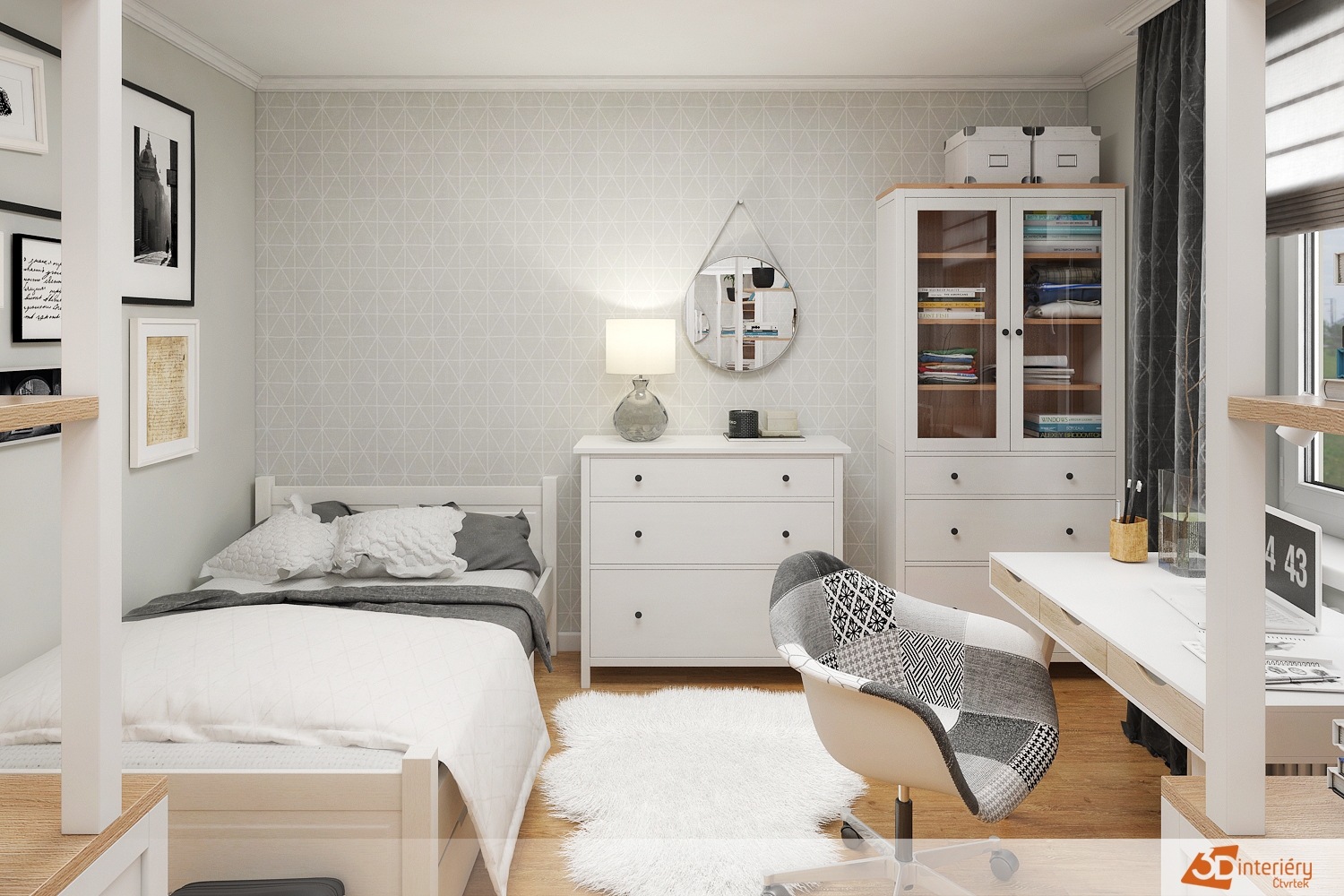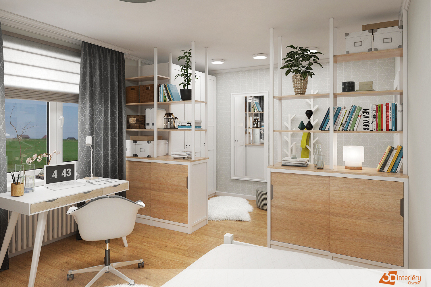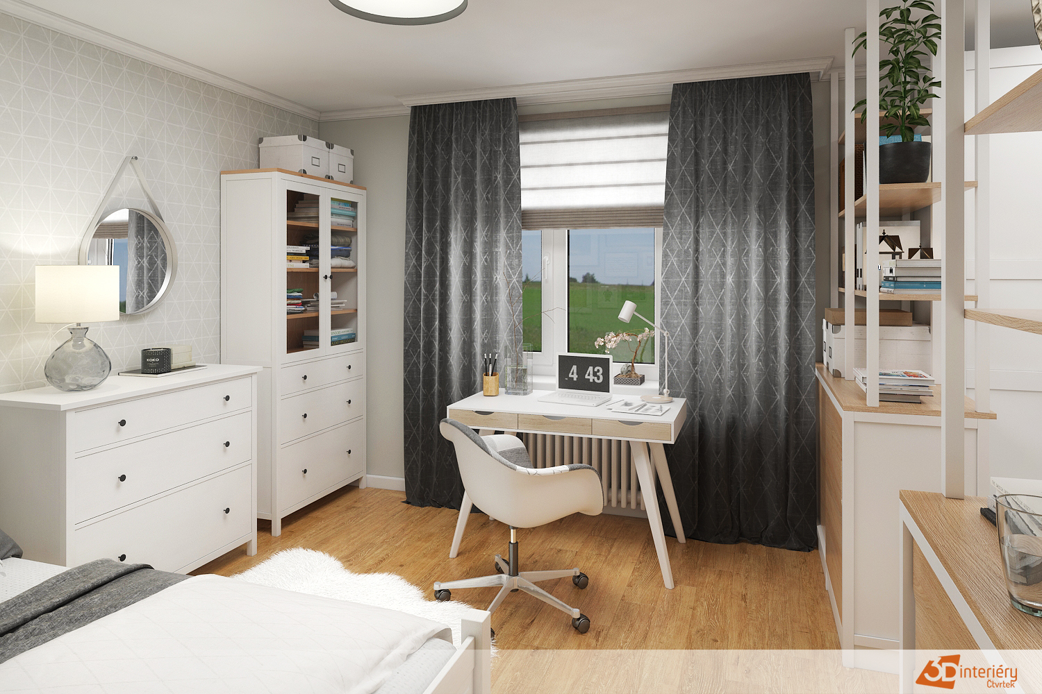 Pokoj pro studentku musí kombinovat pohodlí, funkčnost a inspirující atmosféru pro učení. Vzhledem k tomu, že studentka tráví v pokoji hodně času, klade se důraz na vytvoření prostoru, který podporuje soustředění, ale zároveň nabízí místo pro odpočinek.
