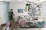 Rozdělení místnosti na zóny pomáhá vytvořit organizovaný a praktický prostor. Obytná, spací, pracovní a kuchyňská část mohou koexistovat bez nutnosti stavět pevné příčky. Místo nich se hodí použít regály, paravány nebo závěsy, které zachovávají otevřenost interiéru. Multifunkční nábytek, například rozkládací pohovka, stůl kombinující pracovní a jídelní funkci nebo postel s úložnými zásuvkami, zajistí maximální využití prostoru.