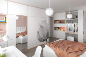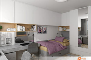 Pokoj pro studentku působí útulně, funkčně a podporuje soustředění i odpočinek. V jedné části místnosti stojí prostorná bílá skříň s jednoduchým designem, která nabízí dostatek místa pro oblečení, knihy i školní potřeby. Skříň se otevírá hladce a její vnitřní uspořádání umožňuje snadný přístup ke všem věcem. Hned vedle skříně leží pohodlná postel s měkkým přehozem […]