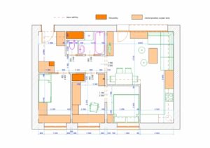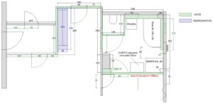 - okótování (rozměry) nábytku, sádrokartónu, dispozice příček a stavebních úprav