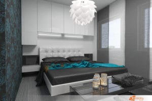 Návrh moderní ložnice s modrým akcentem